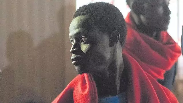 Uno de los 80 ocupantes que la Salvamar 'Izar' rescató ayer cuando intentaba llegar en una neumática a Fuerteventura. / Efe