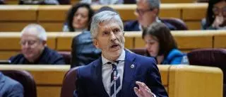 El ministro del Interior, Fernando Grande-Marlaska, en la sesión de control en el Senado. / Alejandro Martínez Vélez- Europa Press