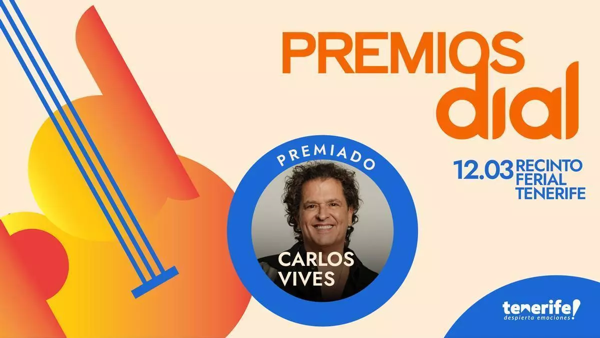 Los Premios Dial Tenerife continúan desvelando los nombres que formarán parte de su esperada 30ª edición. Carlos Vives suma al cartel de premiados en el que ya figuran nombres como Luis Fonsi, Laura Pausini, Leire Martínez, Pablo Alborán, Sergio Dalma, Pablo López, Amaral, Café Quijano, Ezio Oliva, Marta Sánchez, Nil Moliner, Funambulista, Antoñito Molina, Depol, Antonio José, Merche y Kany García. Además, Ana Torroja, Luz Casal, Mónica Naranjo y Antonio Carmona recibirán los Premios Dial a la Trayectoria
