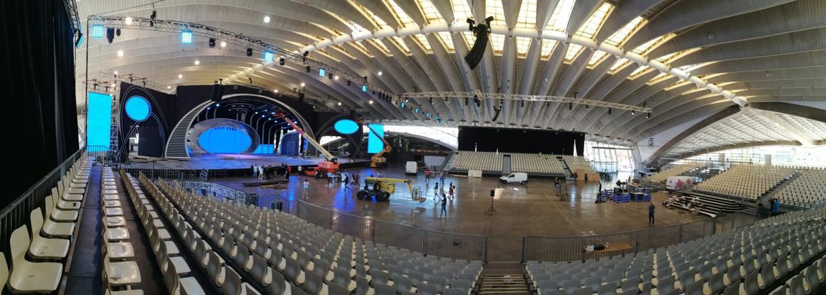 Puesta en marcha del escenario del Carnaval de Santa Cruz de Tenerife en el Recinto Ferial.