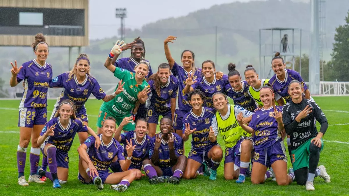Las futbolistas del Costa Adeje Tenerife celebran su victoria en el campo de la Real Sociedad. / CDTF