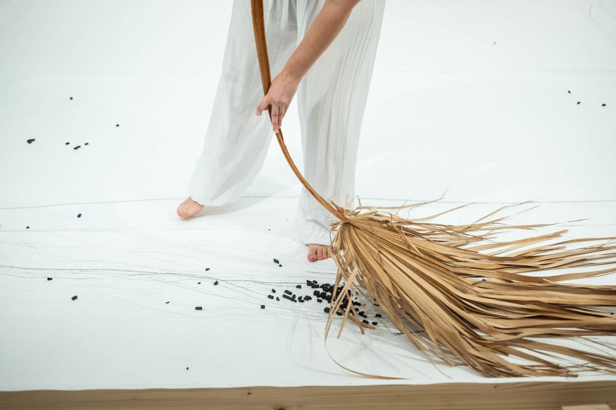 La artista Madeleine Lohrum presenta en el Círculo de Bellas Artes 'A ras de suelo', una performance que transforma un gesto cotidiano, como es barrer, en una experiencia de creación colectiva, memoria, atención plena y reflexión sobre el tiempo y el trabajo