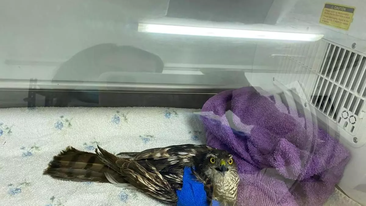 El gavilán herido durante su recuperación.
