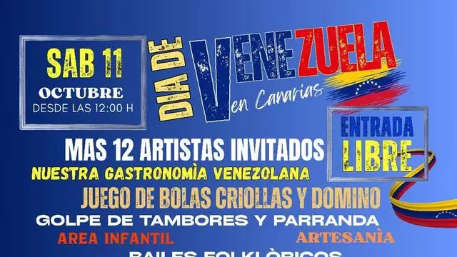La jornada, organizada por la comunidad venezolana residente en las islas, comenzará a las 11:00 horas y ofrecerá un programa cargado de actividades culturales, artísticas y solidarias para todas las edades.
