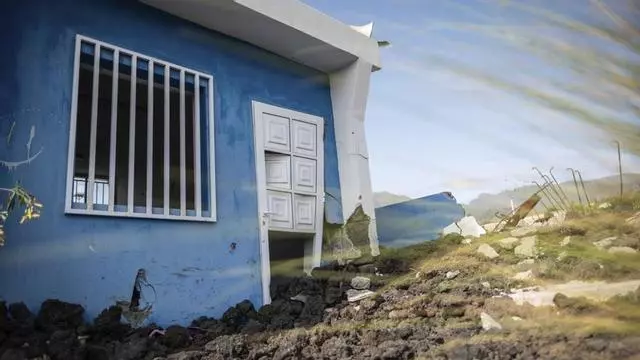 Imagen de los daños ocasionados en el colegio azul de La Laguna por la erupción del Tajogaite. / ANDRÉS GUTIÉRREZ