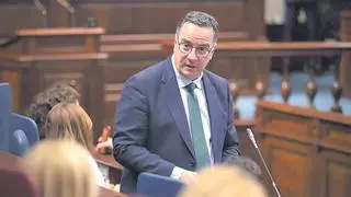 El consejero de Educación, Poli Suárez, durante su intervención en el Pleno del Parlamento. / E. D.