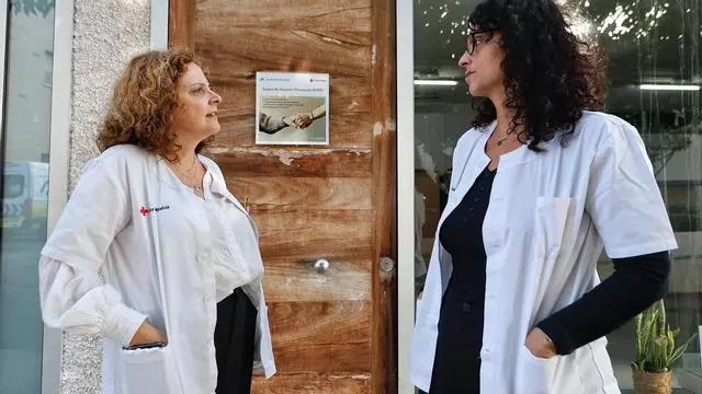 Las psicólogas Libertad Simón y Gemma Roqueiras frente a la sala de terapias del Hospital de Ofra. / María Pisaca