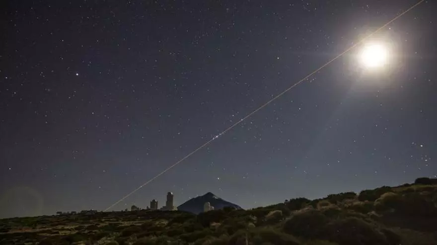 Láser lanzado desde el Observatorio del Teide. / DANIEL LÓPEZ/IAC