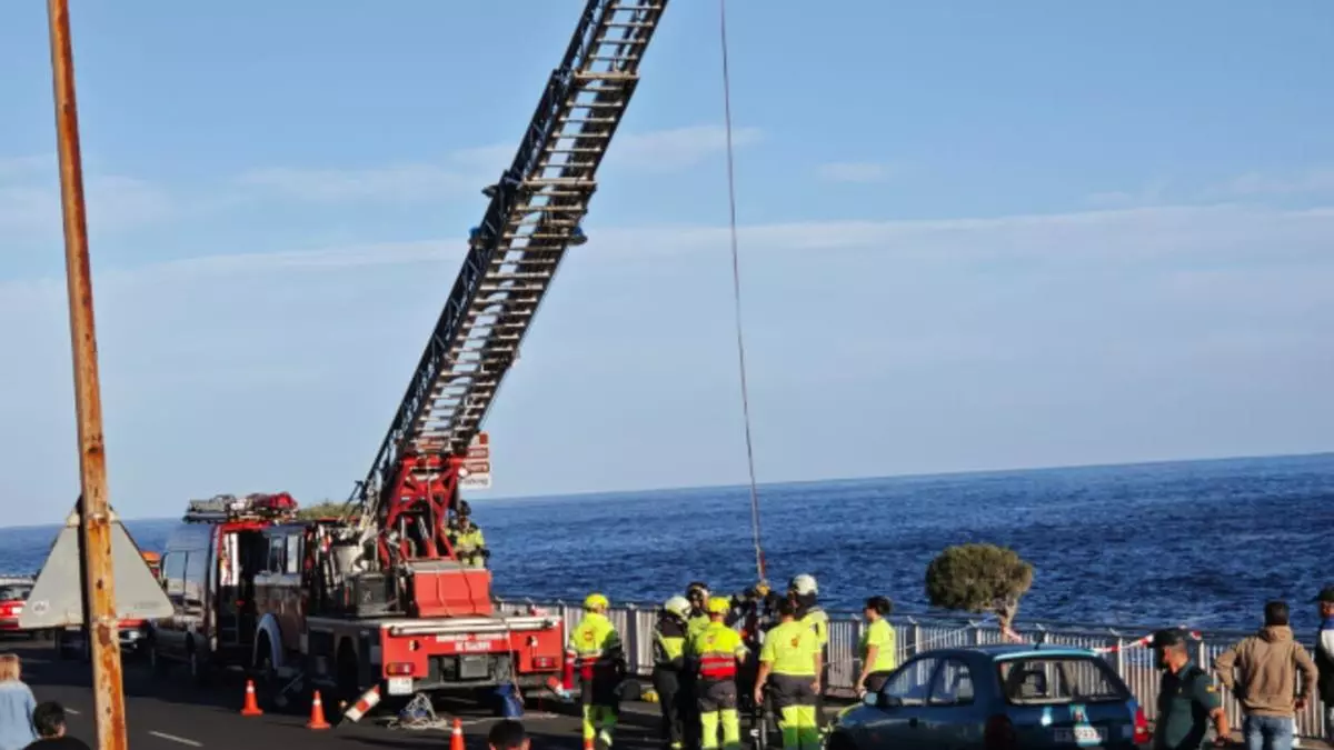 Un pescador cae a las rocas en Garachico y le rescatan con la grúa de bomberos