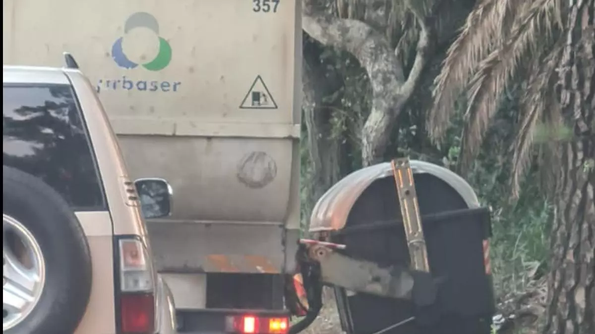 Una de las imágenes más sorprendentes fue la de un camión recogiendo basura en una de las carreteras más colapsadas en ese instante en la zona de Guamasa. El vehículo realizaba tareas de recogida de basura, con la consecuente molestia que acarrea para el resto de coches en la carretera.